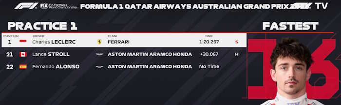A equipe Aston Martin informou que “encontrou um possível problema relacionado à unidade de potência que impedirá Fernando de participar do TL1.” Infelizmente, outros pilotos também enfrentaram problemas. Arvid Lindblad parou nos boxes, provocando a entrada do Safety Car Virtual.