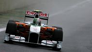 f1 force india interlagos gp brasilAdrian Sutil, 18º colocado: Eu tive um Q1 confuso hoje. Na minha primeira ida para a pista, eu me perdi quando me aproximei de Tonio (Liuzzi), provavelmente quando a pista estava no seu melhor estado. Então não consegui encontrar aderência no final e então quando a chuva veio, meus pneus estavam muito granulados e não consegui marcar um tempo razoável. Por causa disso estamos largando um pouco longe do bolo, mas eu definitivamente não vou desistir. Temos um ritmo de corrida forte e nossas chamadas para o pit em condições climáticas insconstantes funcionaram sempre no momento certo ao longo deste ano. Fizemos muita coisa durante o ano para desanimarmos no final, então estou motivado a dar tudo o que eu posso.