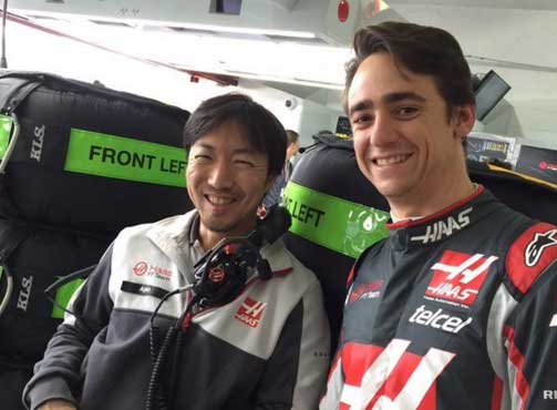 11:30 Gutierrez no box com o engenheiro chefe da Haas Ayao Komatsu.