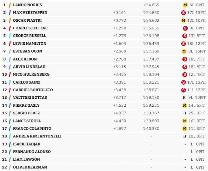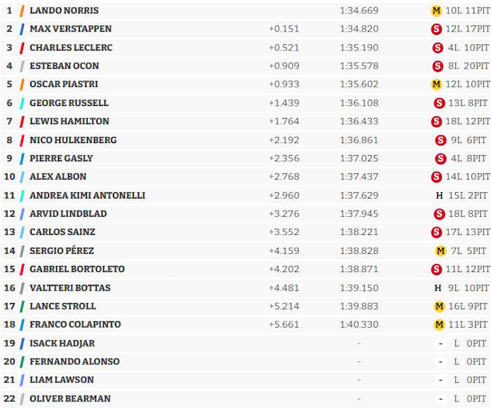 Norris – McLaren (Mercedes) – 18 voltas