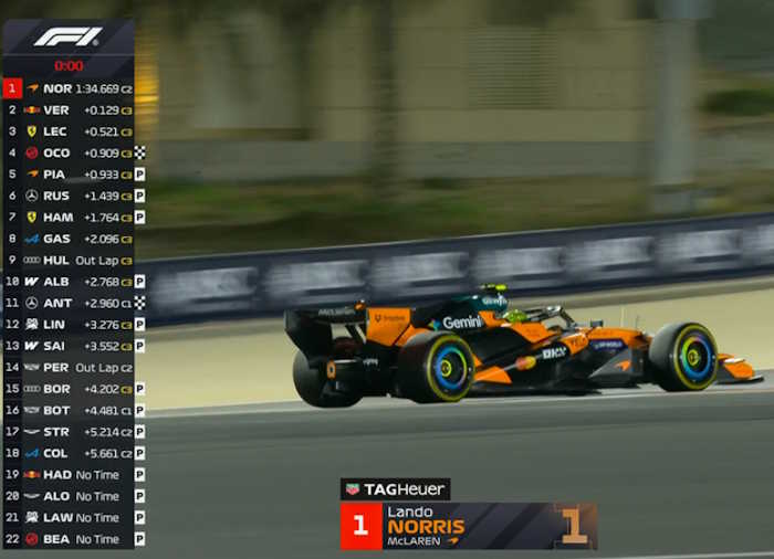 Esse tempo, que o deixa meio segundo atrás de Norris, foi obtido logo após a troca dos pneus por um novo jogo de pneus macios.