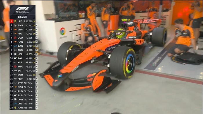 “Antonelli é o único piloto que não está na pista esta tarde e que está observando atentamente do pit wall – o que ele pode aprender com a atuação de George e dos outros?