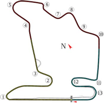 Para 2013, a FIA decidiu introduzir uma outra área de DRS, logo depois da primeira curva. Apesar desta segunda reta ser bem curta, a ideia é que os pilotos possam se aproximar do adversário antes da Curva 1, e efetuar a ultrapassagem antes da Curva 2.