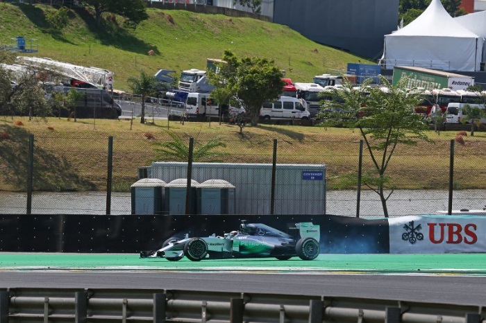 Hamilton estava mais rápido que seu companheiro de equipe em seu segundo stint em Interlagos, e estava prestes a assumir a liderança ao dar várias voltas rápidas após Rosberg fazer sua parada antes dele.