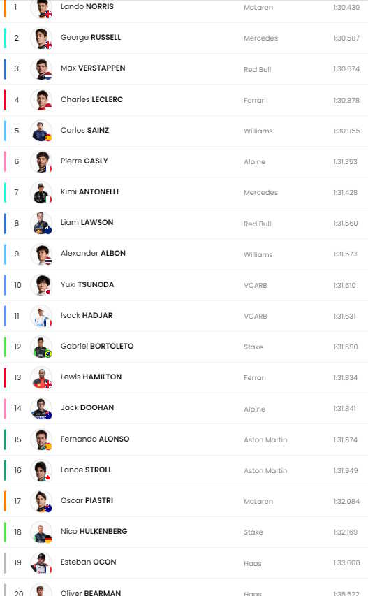 1. Kimi Antonelli – Mercedes – 1m31.428s