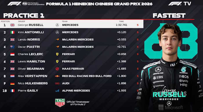 O piloto da Mercedes George Russell liderou o TL1 e único treino livre para o GP da China de 2026. Seu companheiro de equipe Kimi Antonelli foi P2. As Ferraris de Charles Leclerc e Lewis Hamilton registraram o quinto e o sexto tempos mais rápidos em Xangai. Portanto, as duas equipes mantiveram a vantagem sobre a Red Bull que vinha de Melbourne, mas não sobre a McLaren.