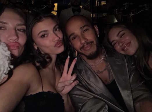 Apesar das frustrações nas pistas, o piloto de 40 anos aproveitou a estada em Las Vegas. Ele celebrou e socializou com personalidades como a atriz Damson Idris e amigas.