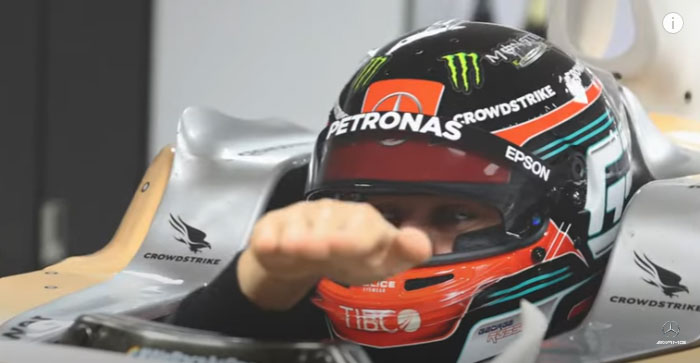 Em um vídeo divulgado pela Mercedes, Russell é visto visitando a fábrica para conhecer um modelo de seu assento para o carro de 2023.