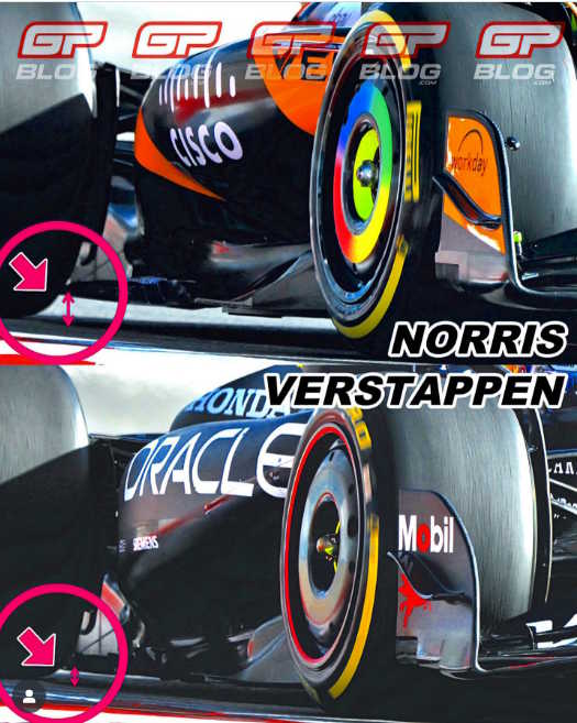 Abaixo uma imagem comparando a altura da McLaren de Norris e o Red Bull de Verstappen