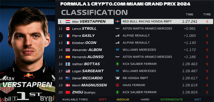 Max Verstappen conquistou mais uma pole position na temporada 2024 da Fórmula 1 na classificação para o GP de Miami.