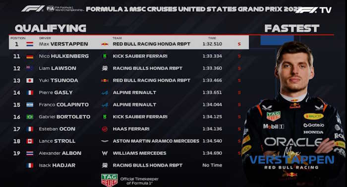 Max Verstappen manteve o embalo na luta pelo título mundial da Fórmula 1 ao conquistar a pole position para o Grande Prêmio dos Estados Unidos.